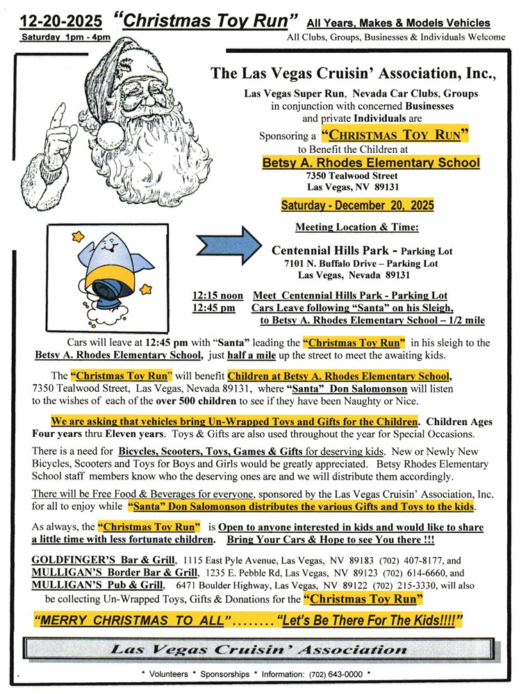 [ Home ] [ Las Vegas Cruisin ] [ Mesquite Shows ] [ Super Run ] [ Thanksgiving ] [ Injured Police ] [ Toy Run ] [ Veterans ] [ Armed Forces ]